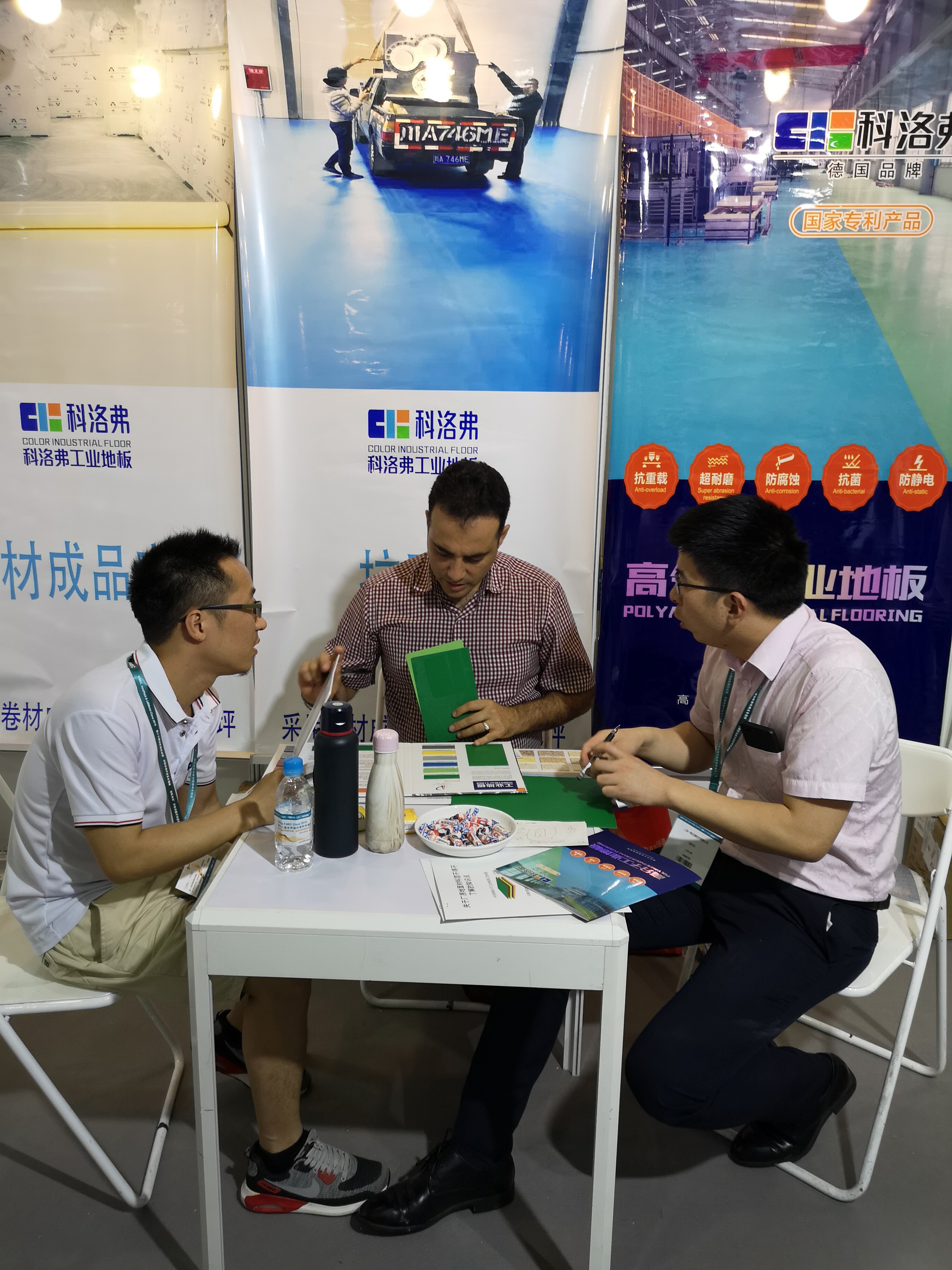 在此次展會上出現(xiàn)了一種顛覆傳統(tǒng)半成品安裝模式工業(yè)地坪的新型工業(yè)地面材料---高分子工業(yè)地板,此工 業(yè)地板采用成品卷材鋪裝,由湖南峰暢建材有限公司(科洛弗品牌)投入研發(fā)并在取得國家專利后生產(chǎn)面市,目前已在眾多知名上市企業(yè)生產(chǎn)廠房地面投入使用。如:得潤電子、興發(fā)集團、艾華集團、長高集團、千山藥機、科力遠、福耀玻璃、中糧集團、蒙牛乳業(yè)等。科洛弗高分子工業(yè)地板之所以受到眾多知名企業(yè)青睞,是因為高分子工業(yè)地板具備了傳統(tǒng)工業(yè)地坪材料所無法具備的眾多優(yōu)點,主要突出在環(huán)保、耐磨、防腐蝕、防靜電、抗菌、易安裝易維修等方面的優(yōu)勢。