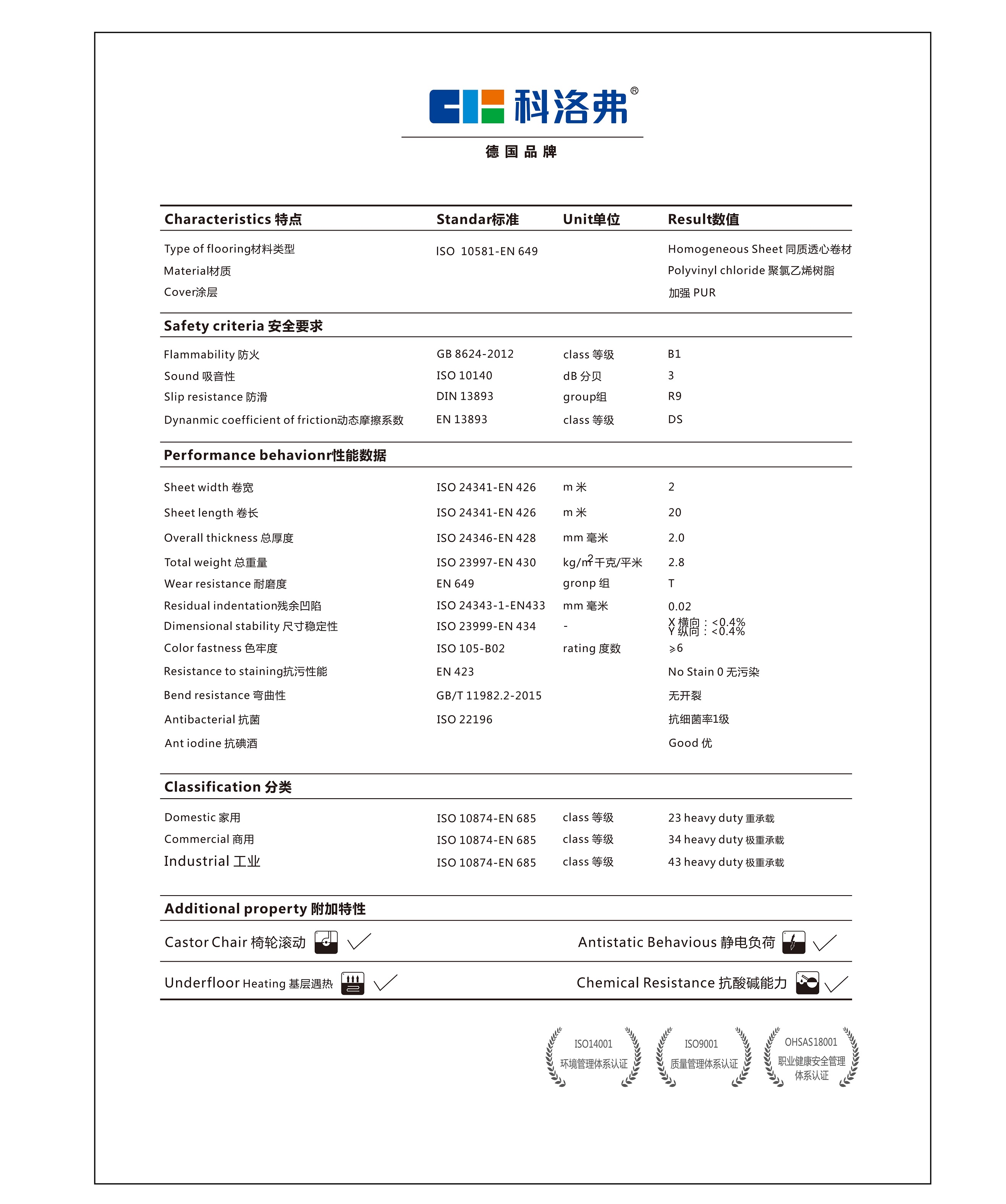 科潔系列無(wú)方向同質(zhì)透心PVC地板
