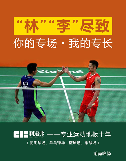 在以后的賽場上,可能再無林、李。但是在羽毛球的賽場上,會有更多的“林”、“李”譜寫這段傳奇,而專業(yè)羽毛球場地板廠家——科洛弗運動地板:適用于籃球場、網(wǎng)球場、羽毛球場、乒乓球場、排球場,綠色環(huán)保、抗沖擊、吸音、阻燃、防滑、腳感舒適、易清潔,品種多樣。在科洛弗運動地板上,這是屬于你們的專場,我們的專長!