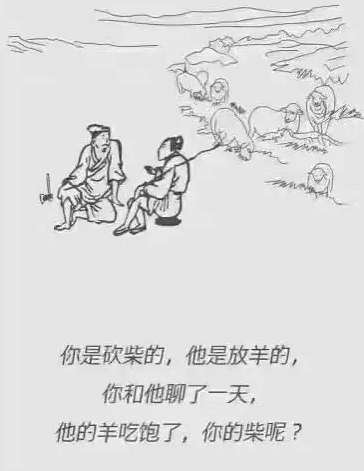 1、你是砍柴的,他是放羊的,你和他聊了一天,他的羊吃飽了,你的柴呢? 砍柴的陪不起放羊的。